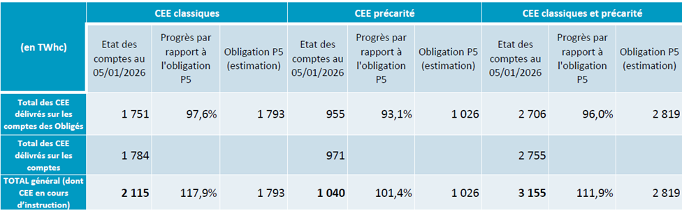 Tableau « Etat des comptes » Slide 12 – JT CEE 2026 – ADEME, ATEE, DGEC