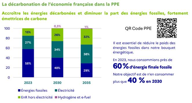 Le point central de cette PPE est l’objectif 2030 de consommation d’énergie finale d’origine fossile qui passe de 60% à 40%, puis 29% en 2035 ! Quels sont les secteurs qui seront les principaux leviers de la décarbonation de l’économie française ?